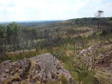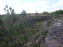 Incendie de la butte de Tiot au printemps 2009 : destruction d'habitats et d'espèces.
